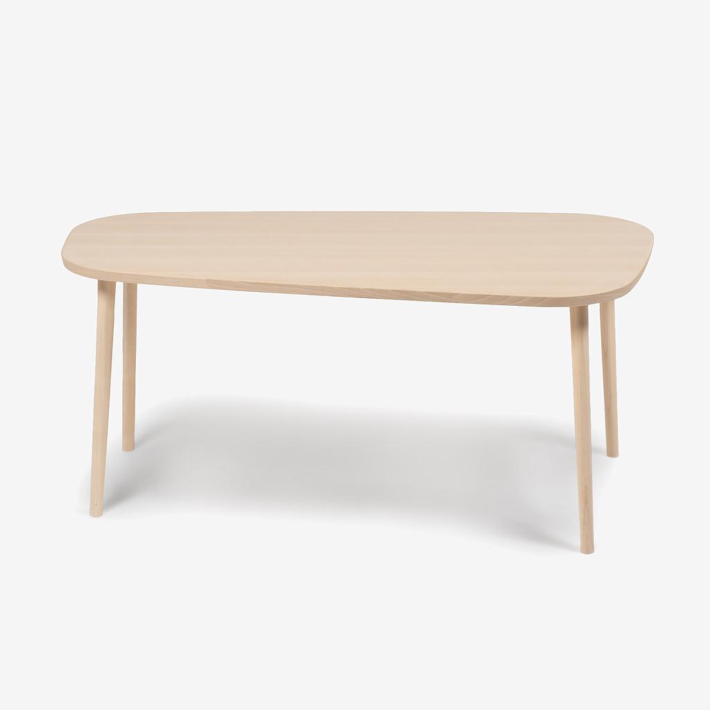 「GAKKO」は、奥行きに変化をもたせたデザインで、座る位置を替えることで人と人との距離感をつくることができます。様々な用途に合わせて使えるダイニングテーブルです。